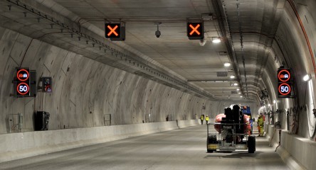 Currently, internal construction and installation work is being carried out in the tunnel. Tests of Variable Message Signs (VMS) have also been conducted.